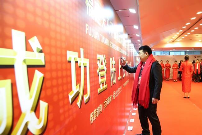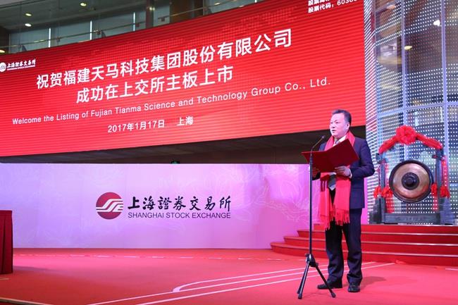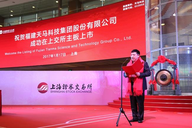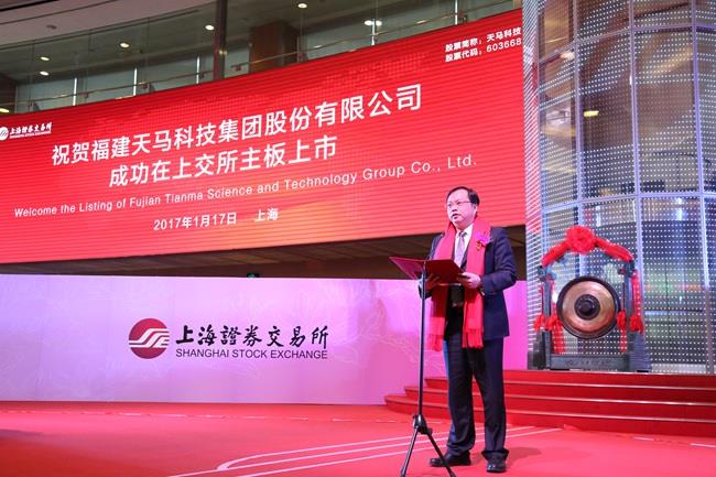 上市儀式上,福清市張帆市長、海通證券瞿秋平總裁分別在發表了熱情洋溢的致辭,向天馬科技的成功上市表示熱烈祝賀,并表示將一如既往地權利支持天馬科技的發展。天馬科技陳慶堂董事長與上海證券交易領導簽訂《上市協議書》,并與上海證券交易領導互贈上市紀念品。