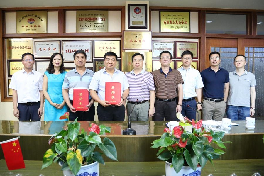 廖深基書記、陳盛校長等領(lǐng)導(dǎo)表示,中國飼料工業(yè)協(xié)會(huì)副會(huì)長單位天馬科技是我國特種水產(chǎn)飼料的領(lǐng)軍者,戰(zhàn)略布局清晰、企業(yè)文化優(yōu)秀、發(fā)展態(tài)勢強(qiáng)勁,是員工創(chuàng)業(yè)的樂園、興業(yè)的熱土。福建師大十分欽佩天馬科技的重才之風(fēng)和陳慶堂董事長的愛才之舉,真誠希望與天馬科技共建產(chǎn)業(yè)研究院和大學(xué)生實(shí)訓(xùn)基地,通過與天馬科技的合作,輸送專業(yè)人才、先進(jìn)的科研經(jīng)驗(yàn)及創(chuàng)新理念,為我國水產(chǎn)業(yè)提供智力支持及技術(shù)保障,助推我國水產(chǎn)業(yè)轉(zhuǎn)型發(fā)展。同時(shí),通過與天馬科技的合作,為福建師大學(xué)生提供實(shí)操的寶貴機(jī)會(huì),將天馬科技的研發(fā)、經(jīng)營實(shí)力和高校的人才優(yōu)勢進(jìn)行深度融合,為天馬、為行業(yè)培養(yǎng)更多的棟梁之才,助力天馬打造特種水產(chǎn)飼料行業(yè)全球最大的供應(yīng)商,為行業(yè)樹立產(chǎn)學(xué)研結(jié)合的校企合作新模式典范。
