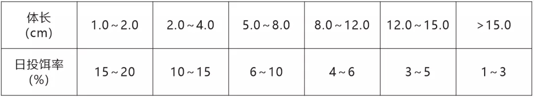 注:具體投喂量根據水溫、水質和攝食情況適時調整。