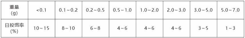 注:具體投喂量根據溫度、水質和攝食情況適時調整。