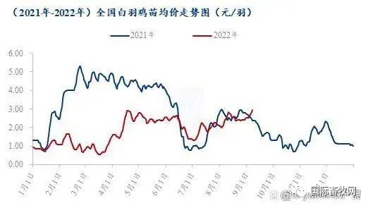 首先,從當前商品代出苗量來看,一方面,2022年8月中旬多家孵化企業看空后市,有規避“中秋節”前大量出苗的情況,種蛋上孵積極性欠佳,致使現階段部分孵化企業出苗量不足;另一方面,受前期氣溫偏高影響,父母代種雞產蛋率下降,致使種蛋供應減少,種禽企業出苗量不大;綜上導致當前商品代出苗減量明顯。