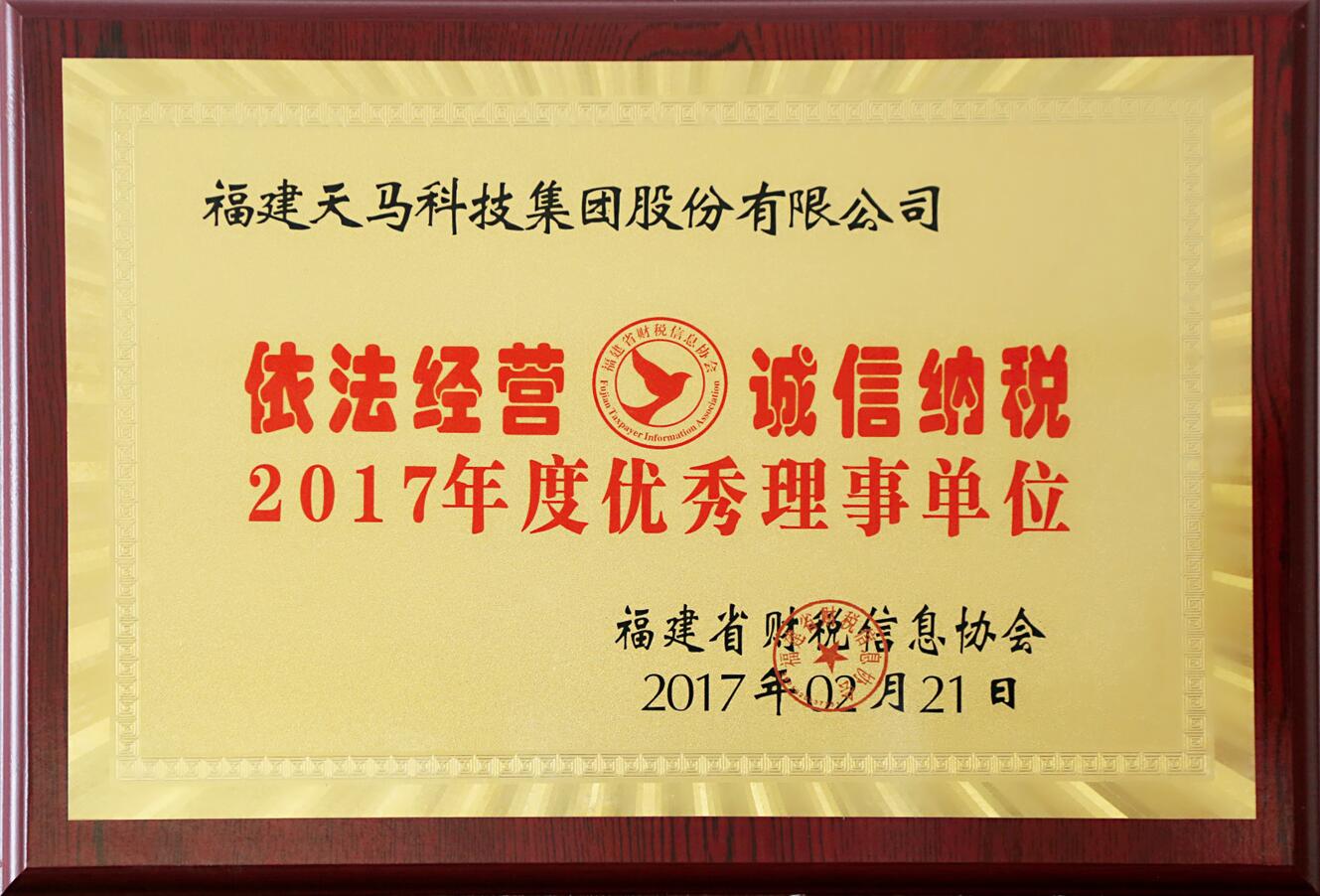 福建省財稅信息協會2017年度優秀理事單位